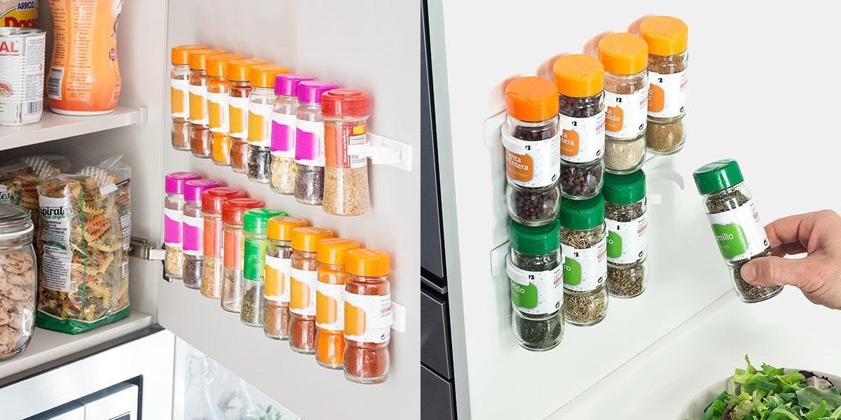Organizing your cabinets and gaining valuable space is now easier than ever with the handy Kitchen Storage-Saver Hooks. They can be easily mounted on cabinet doors or walls and make the unused vertical surface operational, making it easy and convenient to find the spice you are looking for.