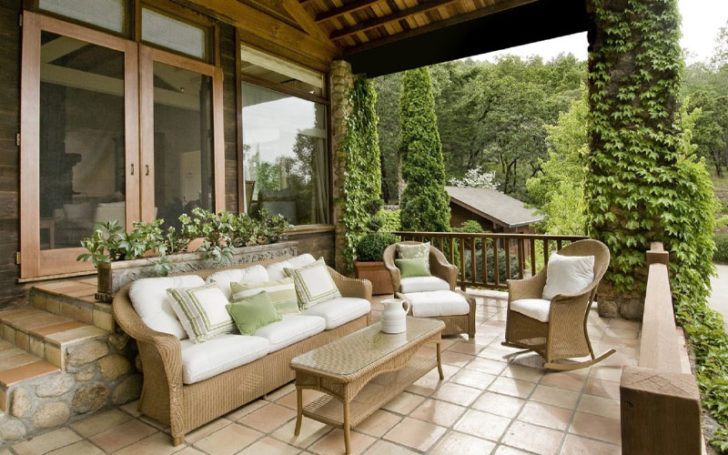Also put in comfortable sofas or chairs made of water-resistant acacia wood to relax with a table for winter evenings.