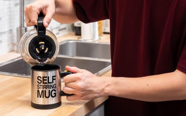 This instant coffee maker self stirring mug will be your best choice when looking for useful and cool kitchen gadgets to make coffee in minutes.
