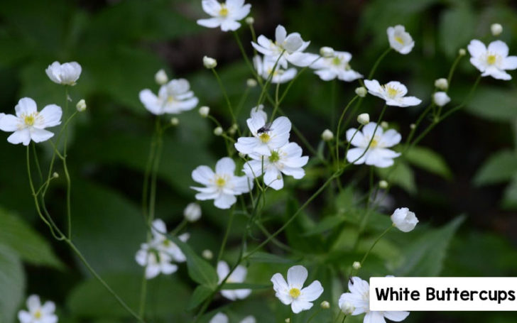 They have the same anatomy as the original buttercup flower but are white in color. The leaves are bright green and small in size.