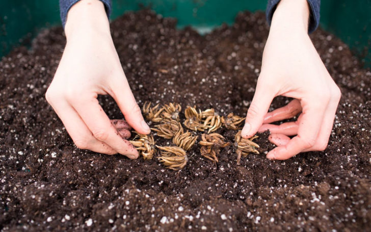 They should be planted 2 inches deep into the ground.