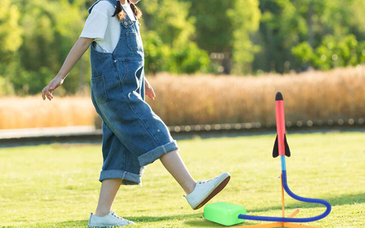 All she has to do is step on the handle to launch the rocket and then your girl or her dog can take it back.
