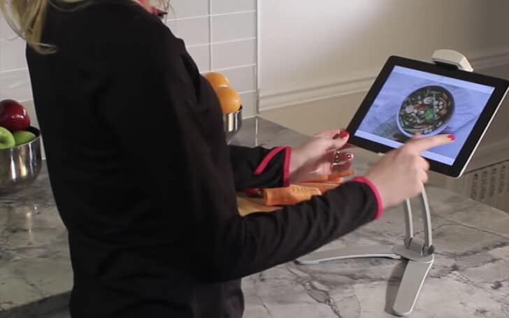 She can watch her favorite recipes or programs while cooking in the kitchen without holding the phone or tablet.