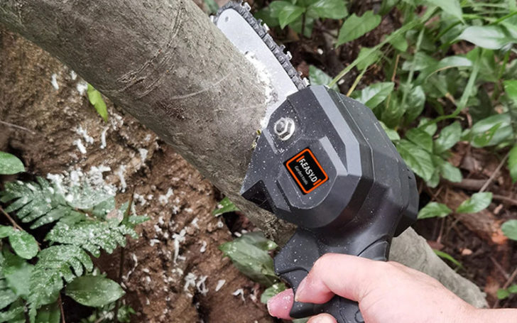 16. This chainsaw present works using battery is completely safe for young environmentalists.