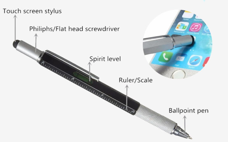 A totally masculine thoughtful gift for men: This pen is not just a pen, it has six different tools: ruler, screwdriver, metal and so on. (Gifts for The Impossible Man)
