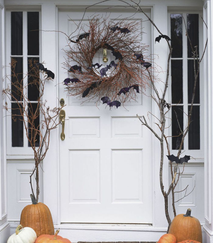 But how to make do-it-yourself bats? Trace the bats on the black hard map paper, scissor and go as a Halloween fancier. Then glue them onto the pre-made metal wire wreath and place on the front door. (Halloween Wreath Ideas)