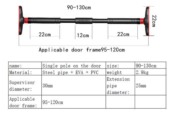 - 90-130cm (total stretch length 130cm, suitable for door frame 95-120cm)