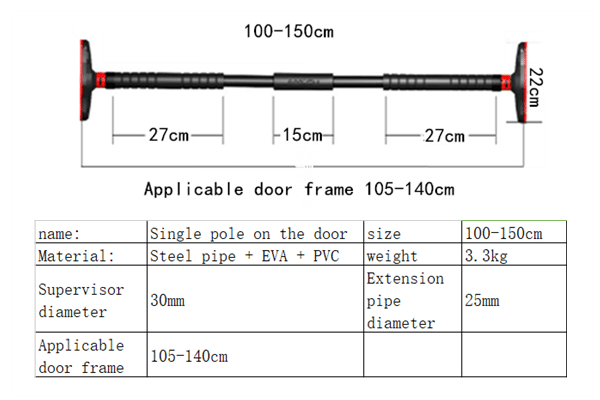 - 100-150cm (total stretch length is 150cm, suitable for door frame 105-140cm)