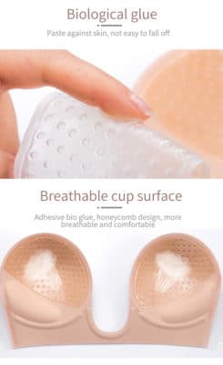 I am a 36D and was worried I wouldn’t be able to achieve the right amount of “lift” I was going for. It was tricky at first but I found the best way to achieve a “push-up” look is to lean forward/downward so your boobs are hanging upside down and then apply the bra while you are bent over. You also want to make sure the bottom “band part” is as high up your chest as it can go (where your ribs meet your boobs). And voila! The perfect amount of cleavage with a strapless bra and a low cut shirt. The adhesive is VERY sticky so it should hold up to many uses. The extra petals were a great bonus. Well worth the price!