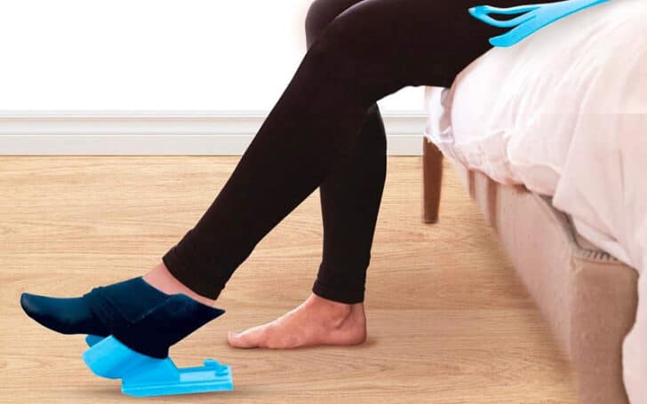 This sock aid kit will help her put on and take off socks without bending them. What about the second? We leave that to you (sweet and caring husband :s).