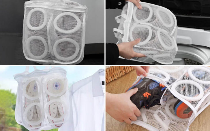 After washing, you can hang the sneakers in the same mesh bag outside to dry easily.