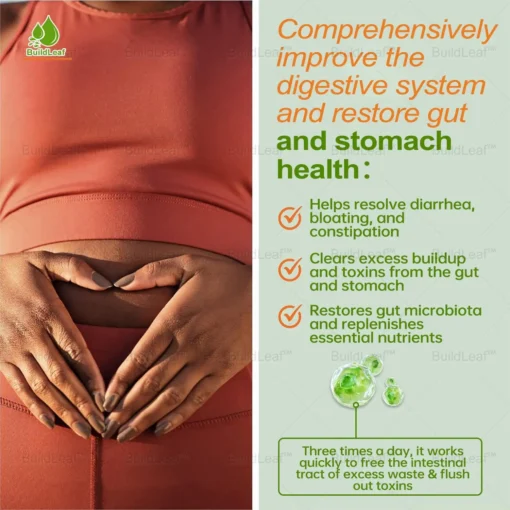 BuildLeafยฎ Tirzepatide GLP-1 Herbal Oral Liquidย address these issues by combiningย Lactobacillus rhamnosus,ย apple cider vinegar, andย green tea extract. This powerful blend optimizesย gut microbiota, improvesย digestion, and reducesย abdominal fat. It helps resolve digestive issues likeย diarrhea,ย bloating, andย constipation, while clearing excess buildup and toxins from the gut and stomach. Importantly, the formula hasย no side effects, making it a safe option for supporting gut health. By restoring gut balance and replenishing essential nutrients, it supportsย detoxificationย and promotes a cleaner, healthier digestive system, aiding inย weight managementย and overall well-being.