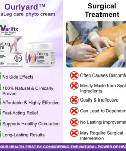 Ourlyardยฎ DiaLeg care phyto creamย is crafted with natural plant extracts that gently soothe sensitive skin while effectively relieving pain and swelling from varicose veins, without any harmful chemicals.