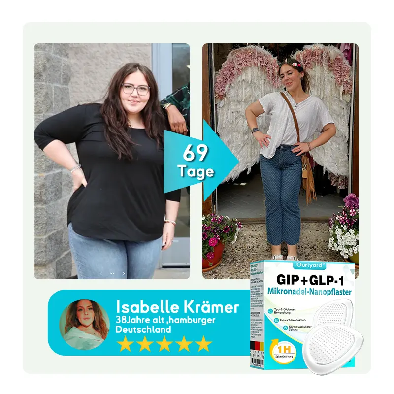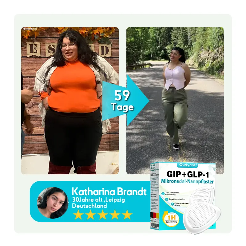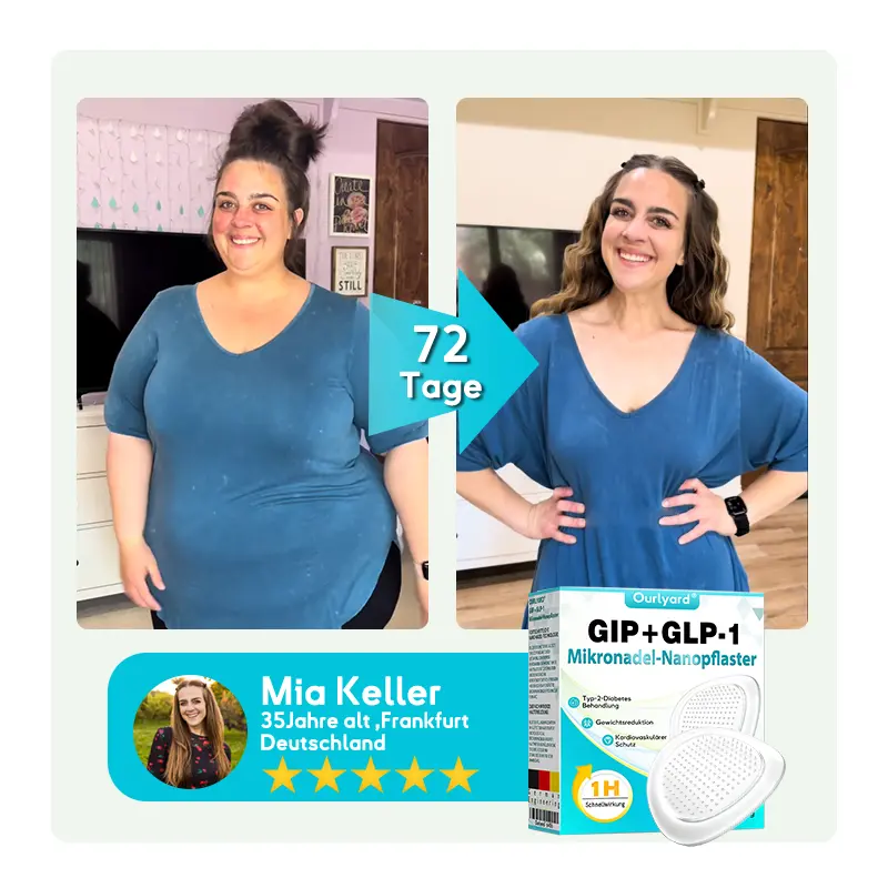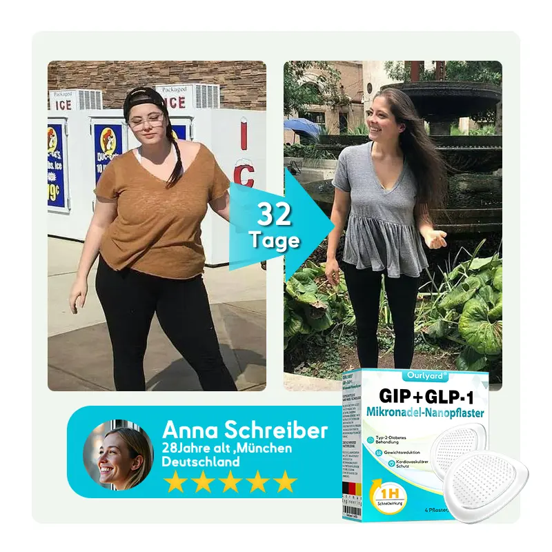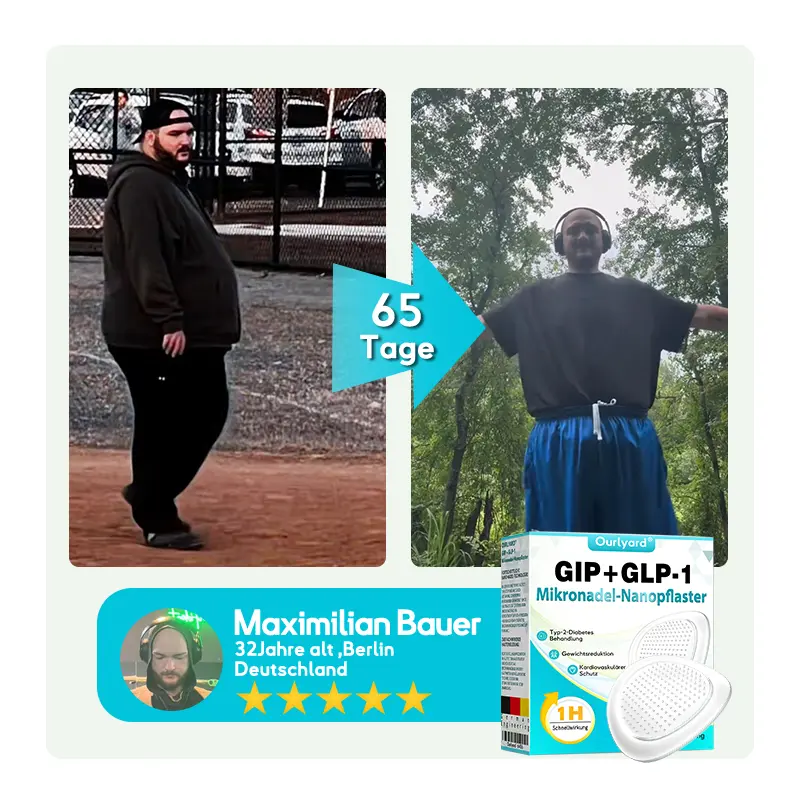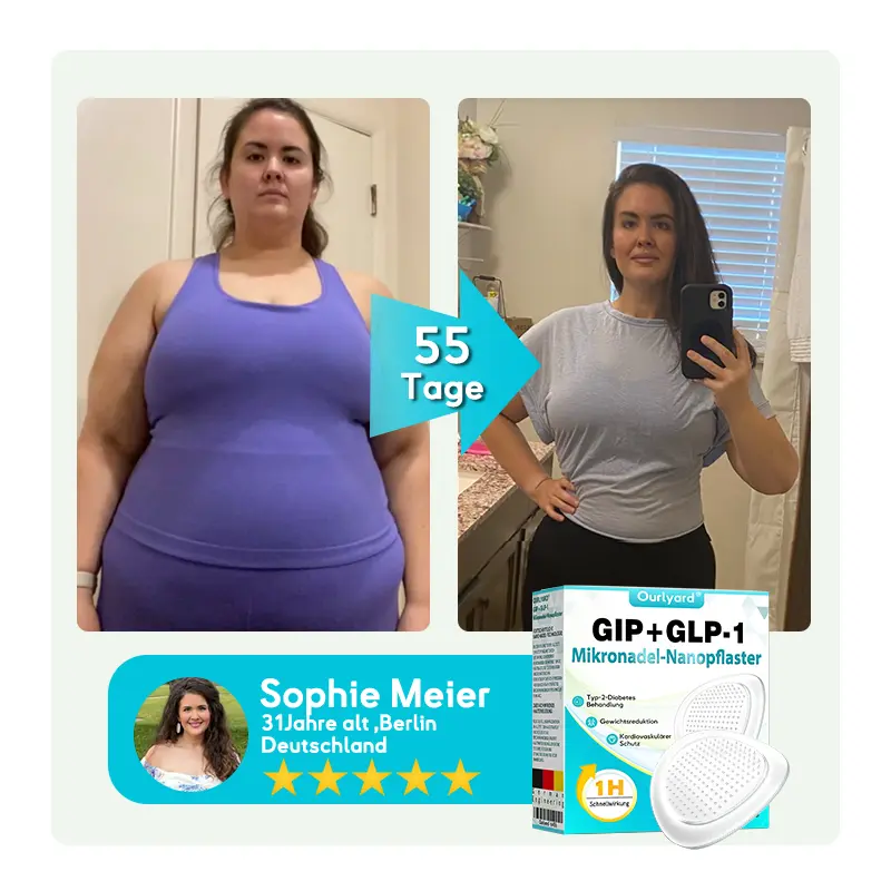 Aus Neugier habe ich dann das Ourlyardยฎ GIP + GLP-1 Mikronadel-Nanopflaster ausprobiert โ und war wirklich positiv รผberrascht. Es wirkt auf zwei Rezeptoren gleichzeitig, und ich habe deutlich gemerkt, dass mein Appetit nachgelassen hat. Ich esse bewusster, und sowohl mein Gewicht als auch mein Blutzuckerwert sind Schritt fรผr Schritt gesunken.