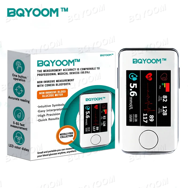 BQYOOMโข’s latest innovation, the multifunctional non-invasive laser glucometer, integrates cutting-edge technologies for superior health monitoring.ย Equipped with a low-energy smart control chip and utilizing the advancedย ‘LAMBERT BEER’ย algorithm, this device ensures highly accurate measurements. It combines photon chip technology and silicon with light absorption spectroscopy to provide reliable, non-invasive monitoring ofย blood glucose, blood pressure, and blood oxygen levels.ย Certified by Health Canada, the device includes six display functions for easy and comprehensive health tracking. Whether you’re managing diabetes, monitoring cardiovascular health, or tracking oxygen levels, BQYOOMโข offers a reliable, all-in-one solution for your health needs.