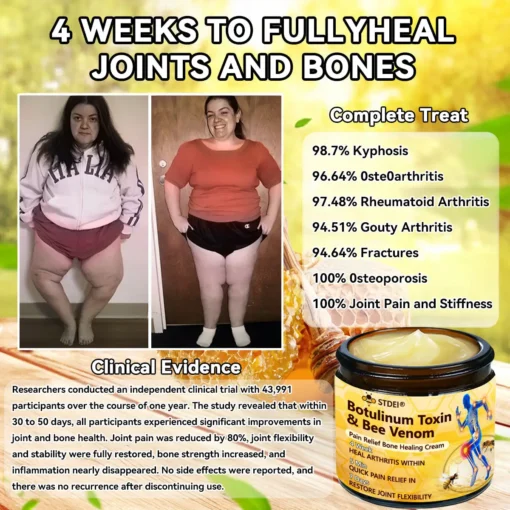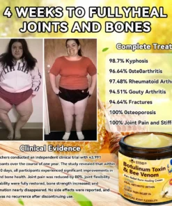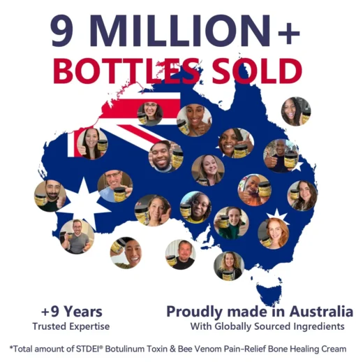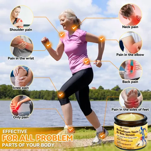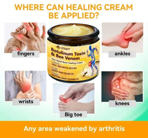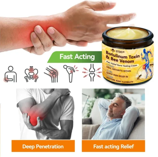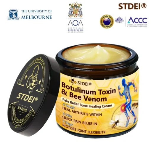 ๐๐๐๐๐ยฎ ๐๐จ๐ญ๐ฎ๐ฅ๐ข๐ง๐ฎ๐ฆ ๐๐จ๐ฑ๐ข๐ง & ๐๐๐ ๐๐๐ง๐จ๐ฆ ๐๐๐ข๐ง-๐๐๐ฅ๐ข๐๐ ๐๐จ๐ง๐ ๐๐๐๐ฅ๐ข๐ง๐ ๐๐ซ๐๐๐ฆ This product is certified and recommended by the Australian Orthopaedic Association (AOA), meeting their high standards to effectively relieve pain and promote bone health.ย Approved by orthopedic doctors, it relieves pain within 5 minutes, restores joint mobility in 7 days, and significantly improves arthritis symptoms in 4 weeks. Choose our Botulinum Toxin & Bee Venom Pain Relief Bone Healing Cream and enjoy reliable results and a pleasant experience with confidence.