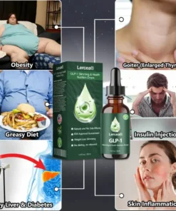 Lerceaยฎ GLP-1 Slimming & Health Nutrition Drops help control blood sugar by boosting insulin secretion and inhibiting glucagon release, stabilizing blood sugar levels. GLP-1 also delays gastric emptying and increases satiety, reducing food intake and promoting weight loss. Weight loss improves insulin sensitivity, lowers blood sugar, and reduces diabetes complications, making Lerceaยฎ an effective tool in diabetes management.