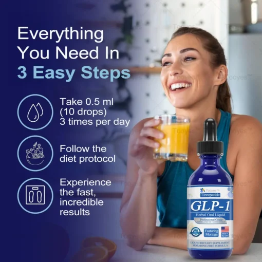 “These Tooyesโข Tirzepatide GLP-1 Herbal Oral Liquid are truly amazing! I’ve been using them continuously for about 3 weeks, and my body has slowly undergone positive changes. It’s like the stored fat in my abdomen is gradually disappearing, making my stomach slimmer. The bloating sensation in my abdomen is gone, and I no longer overeat. My blood sugar symptoms have also improved, and I feel lighter, more energetic, and in better overall health. Iโve already lost 55 lbs and look forward to seeing more results in the coming weeks.”