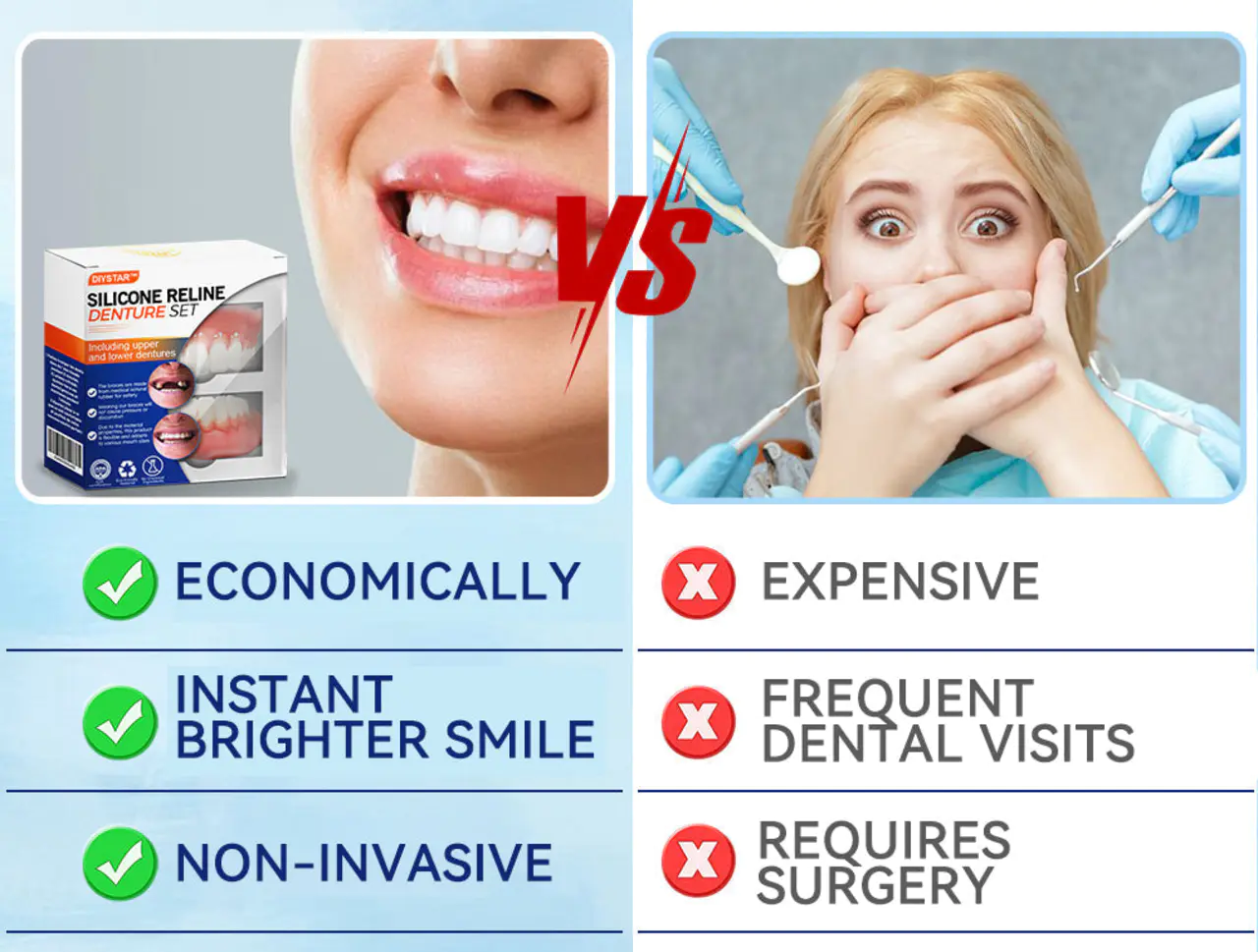 Why should you choose theย DIYSTARโข Silicone Reline Denture Set?