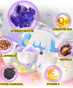This powerful formula combines hydroxyapatite with effective natural ingredients to address a variety of dental issues including pain relief, plaque removal, tooth growth stimulation, cavity prevention, teeth whitening, and mouth ulcer relief.