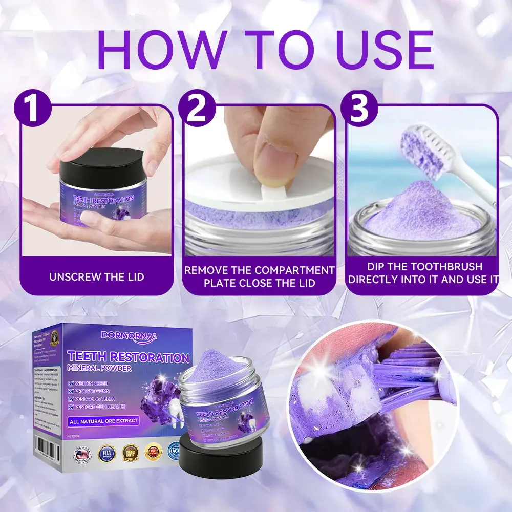 Mineral elements help kill bacteria and eliminate harmful bacteria within the gums, helping to repair cavities and promote long-term oral health. ๐๐จ๐ซ๐ฆ๐จ๐ซ๐ง๐ยฎ ๐๐๐๐ญ๐ก ๐๐๐ฌ๐ญ๐จ๐ซ๐๐ญ๐ข๐จ๐ง ๐๐ข๐ง๐๐ซ๐๐ฅ ๐๐จ๐ฐ๐๐๐ซย delivers essential nutrients directly to the teeth and gums for rapid absorption, promoting fast cavity recovery, cavity repair and improved overall gum health.