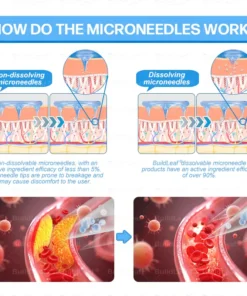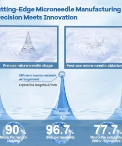 Each needle is 0.27mm long, just 1/7th the thickness of a hair, and is made from dissolvable medication. These micro-needles are precision-engineered using cutting-edge manufacturing techniques to ensure a seamless, pain-free experience while effectively delivering the active ingredients directly into the skin.