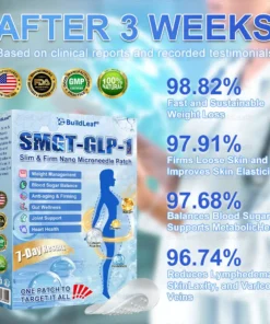 “I had never used 𝑺𝑀𝗚T-𝑮𝐋𝑃-1 treatment before, so before purchasing BuildLeaf® , I did a lot of research and read through several case studies. I confirmed that 𝑺𝑀𝗚T-𝑮𝐋𝑃-1 is a great solution for weight loss. Out of all the options, the 𝐵uil𝗱𝐿ea𝐟®𝑮𝐋𝑃-1 Slim & Firm 𝑁ano 𝑀icroneedle 𝑃atch turned out to be the best choice. As I expected, during the first two weeks of use, I didn’t experience any discomfort. The results were very consistent and gradual. It helped me slowly control my appetite, and I noticed that my metabolism sped up significantly. My digestion improved, and the feeling of fullness lasted longer. After using about 3 boxes over 9 weeks, I went from 180 lbs to 128 lbs. The results came even faster than what I read online about people getting 𝑺𝑀𝗚T-𝑮𝐋𝑃-1 injections at medical facilities! That’s because BuildLeaf® has higher efficacy and better adherence to the plan. I honestly think everyone should give the 𝑺𝑀𝗚T-𝑮𝐋𝑃-1 Microneedle Patch a try—it’s a great new treatment option.”