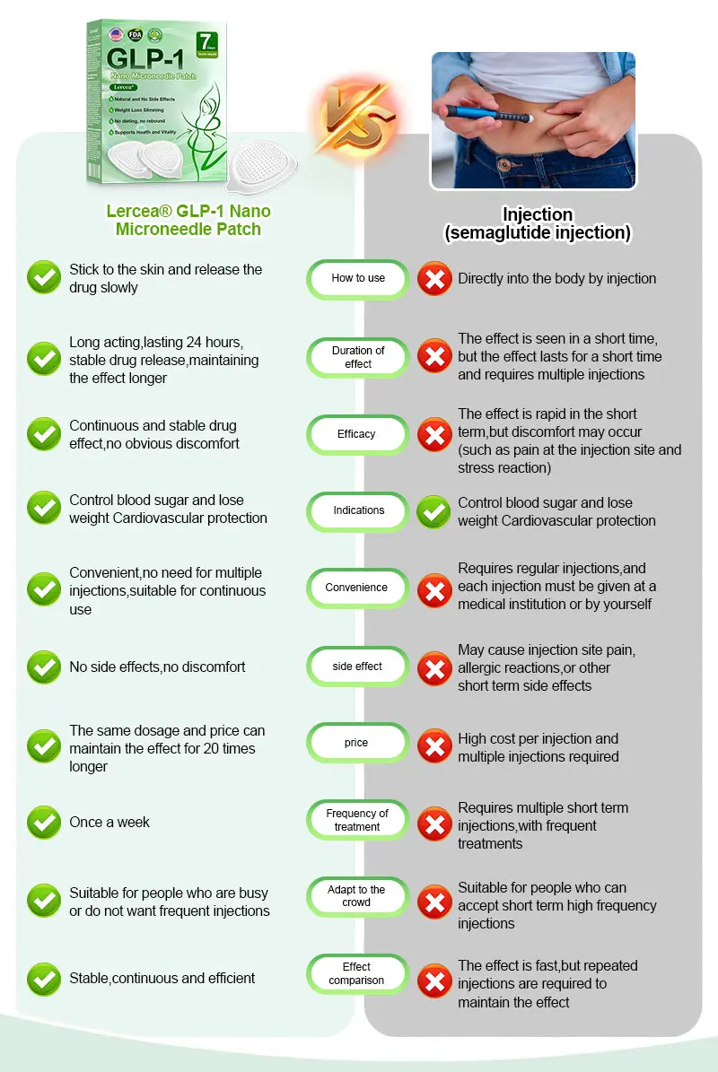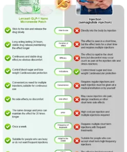 The ๐ณ๐๐๐๐๐ยฎ SMGT-GLP-1 Nano Microneedle Patch offers a long-lasting, slow release of the medication, ensuring a stable effect over 24 hours without causing any discomfort. With the same dosage and price, it can maintain up to 20 times longer-lasting effects (similar to the difference between an IV drip and a single injection).