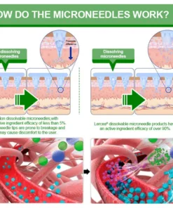 Each needle is 0.27mm long, just 1/7th the thickness of a hair, and is made from dissolvable medication. These micro-needles are precision-engineered using cutting-edge manufacturing techniques to ensure a seamless, pain-free experience while effectively delivering the active ingredients directly into the skin.
