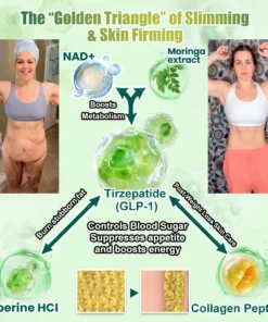 Appetite Control with Lasting Energy: Tirzepatide, Berberine HCl, and NAD+ act on the central nervous system to enhance satiety signals, block hunger cues, and reshape long-term eating habits. Meanwhile, Moringa Leaf Extractโrich in over 90 nutrientsโsupports weight management by helping suppress appetite, stabilize blood sugar, and boost metabolic efficiency. Its bioactive compounds also enhance fat oxidation while delivering steady, natural energy, reducing fatigue and keeping the body active and alert throughout the day. The result is reduced food intake, increased energy levels, and enhanced whole-body wellness.