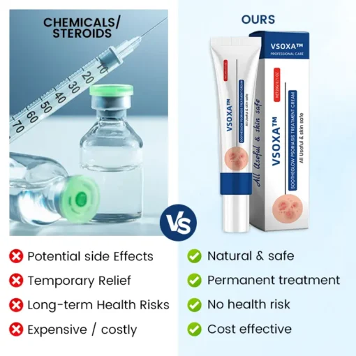 Unlike traditionalย ๐ฃ๐๐ผ๐ฟ๐ถ๐ฎ๐๐ถ๐ย treatments that often rely on potent chemicals and steroids, which may thin the skin and cause long-term irritation,ย ๐ฉ๐๐ผ๐ ๐ฎโข ๐ฆ๐ผ๐ผ๐๐ต๐ฒ๐๐น๐ผ๐ ๐ฃ๐๐ผ๐ฟ๐ถ๐ฎ๐๐ถ๐ย ๐ง๐ฟ๐ฒ๐ฎ๐๐บ๐ฒ๐ป๐ ๐๐ฟ๐ฒ๐ฎ๐บ uses a gentle, natural formula that delivers effective results without harmful side effects. Our cream not only alleviates symptoms but also promotes long-term skin health, offering a safer, more sustainable solution for managingย ๐ฃ๐๐ผ๐ฟ๐ถ๐ฎ๐๐ถ๐.