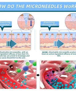 Each needle is 0.27mm long. just 1/7th the thickness of a hair. and is made from dissolvable medication. These micro-needles are precision-engineered using cutting-edge manufacturing techniques to ensure a seamless. pain-free experience while effectively delivering the active ingredients directly into the skin.