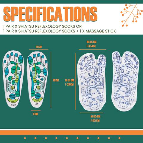 - 1 Pair x Shiatsu Reflexology Socks + 1 x Massage Stick