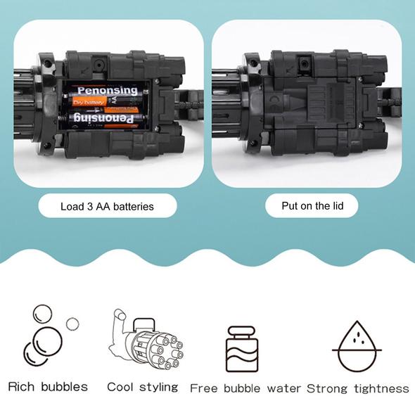- Just put in 3 AA batteries (not included), tap the bubble liquid and pull the trigger, a lot of bubbles will be ejected! No dealing with messy dip-in solutions.