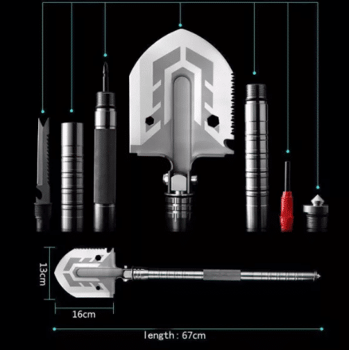 Here’s a list of the uses the survival shovel comes with that’ll help you survive in the wilderness, or just help with general outdoors usage while camping, hiking, or military usage: