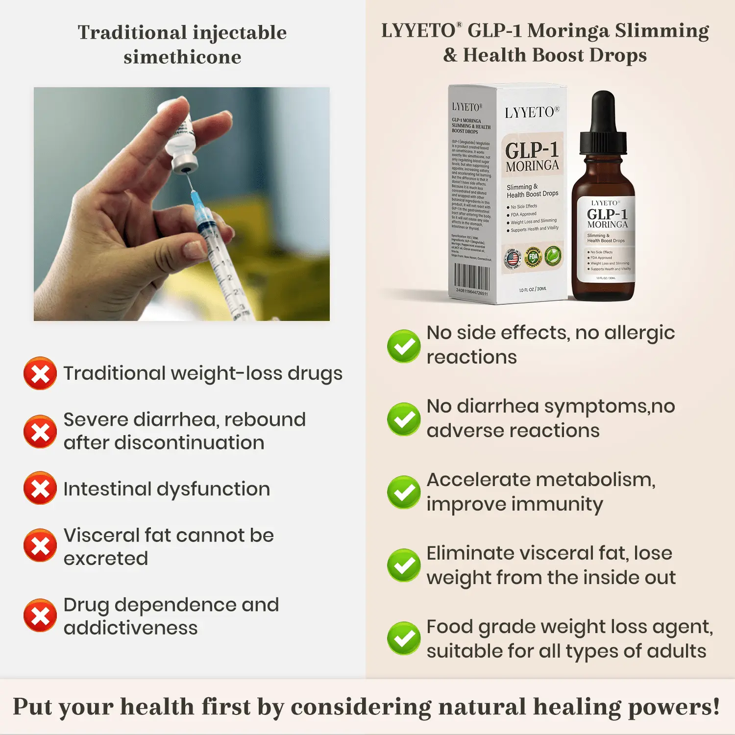 LYYETOยฎ GLP-1 Drops are infused with Moringa, a natural superfood that boosts metabolism, promotes fat burning, and helps regulate blood sugar, while enhancing joint and bone health and increasing overall vitality. According to FDA research, the combination of Moringa and GLP-1 provides more comprehensive support for overall health.