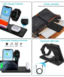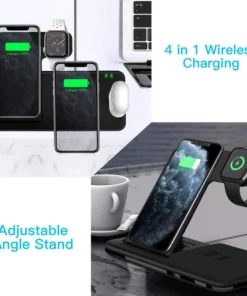 Horizontal and vertical screen can also power the charger. One cable to charge all your iPhone Apple Watch Airpods to make your desktop and nightstand tidier. This wireless charging stand can charge four devices simultaneously, convenient for your life.