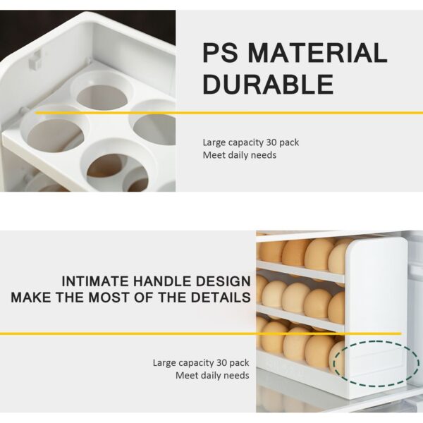 This Egg Holder for Refrigerator has a 30-grid deep slot design that can accommodate 30 eggs at a time. It ensures the stability of eggs, reduces egg collisions, and protects eggs intact.