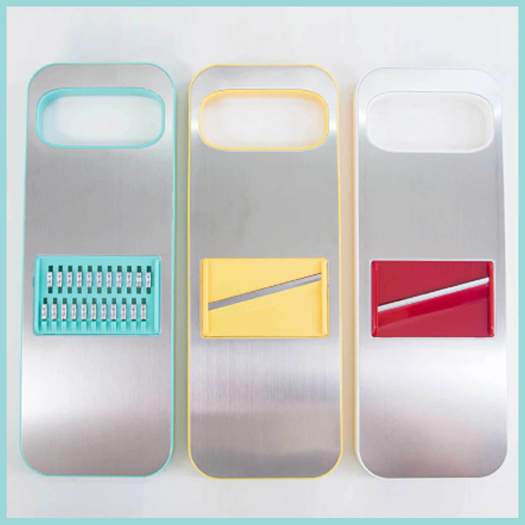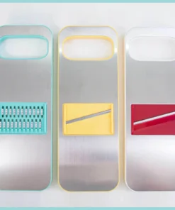 Quality interchangeable blades. Thin slice, thick slice, and grater. The 3 different stainless steel blades are easily adjusted, giving you a variety of thick and thin slicing options. The body storage design can store unused blades into the card slot. Easy switching is more convenient.