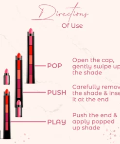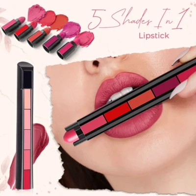 5 in 1 lipstick is one of it’s kind. The stick offers 5 fabulous shades of nudes in just one stick, easy-to-carry, long-lasting lipstick. Each pop of color leaves a velvety matte finish. This lipstick glides smoothly without any tugging or pulling leaving your lips moisturized. This 5 in 1 lipstick has an intense color payoff.