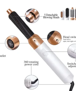 The 5-in-1 Professional Styler includes 5 replaceable brush head heads that dry, straighten, curl and volumize easily.