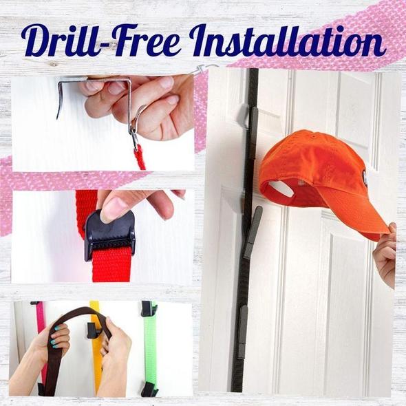The hooks fit easily over doors without using screws, nails or glue. No drilling, screws or extra tools needed.