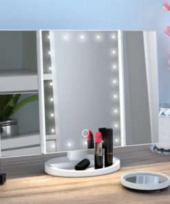 I love the vanity feel it offers with the lights and bulbs, making you feel like you’re really having a “me” time. My children adore the fanciness of the mirrors as well and enjoy sitting in front and looking into the mirrors. It’s a good choice for those with limited space at home since you can fold it up and put it away or carry it elsewhere, very compact. Comes with a cord for energy supply.