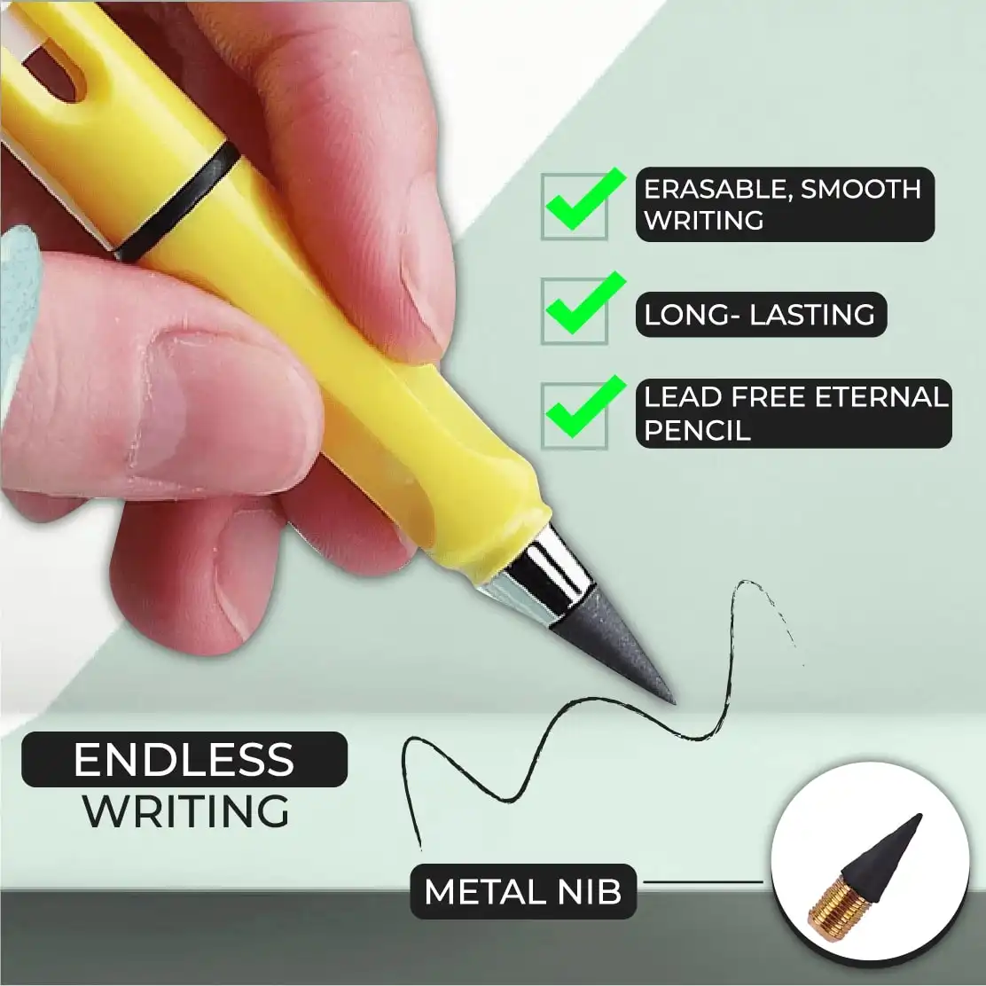 Advanced Endless Pencil has a NON-SLIP body that provides a COMFORTABLE GRIP. It also has a STYLISH and SOPHISTIC DESIGN with ENTERTAINMENT COLOR options PERFECT FOR ALL AGES. 100% GUARANTEED THAT ONE Advanced Endless Pencil is Equivalent to 100 CONVENTIONAL PENS! SAVE THE WOOD FROM CONSUMING, GRINDING, REFILLING AND BUYING!