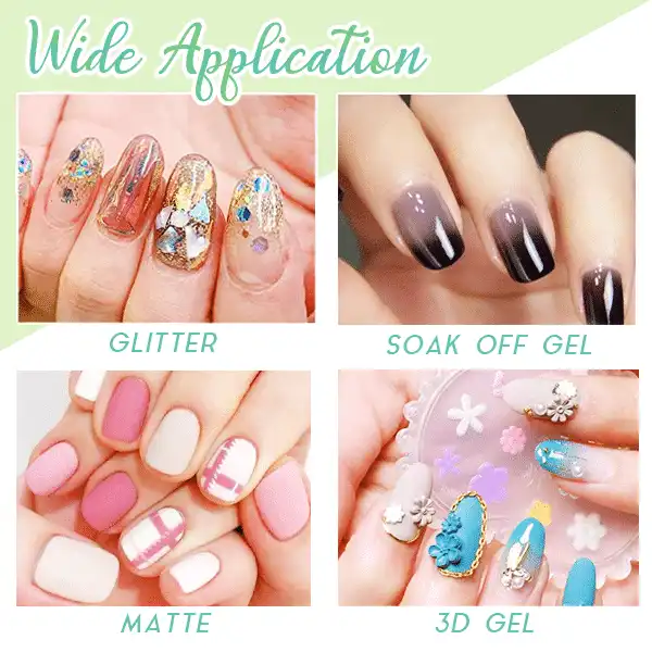 Suitable to remove soak off gel, base coat, top coat, matte top coat, 3D nail decorations etc.