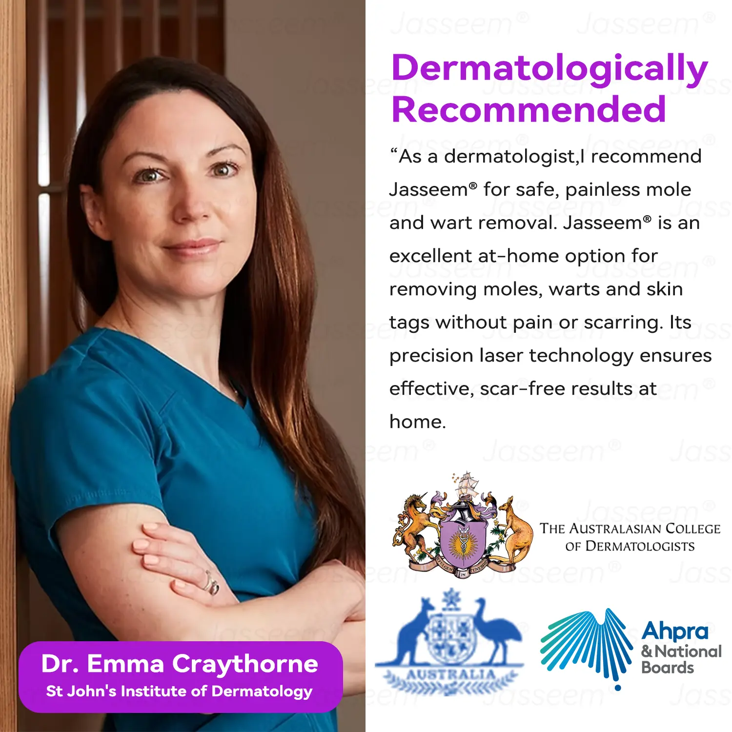 Jasseemยฎ utilises cutting-edge carbon dioxide (COโ) laser technology to precisely target and remove moles, warts, skin tags, and pigmented lesions.
