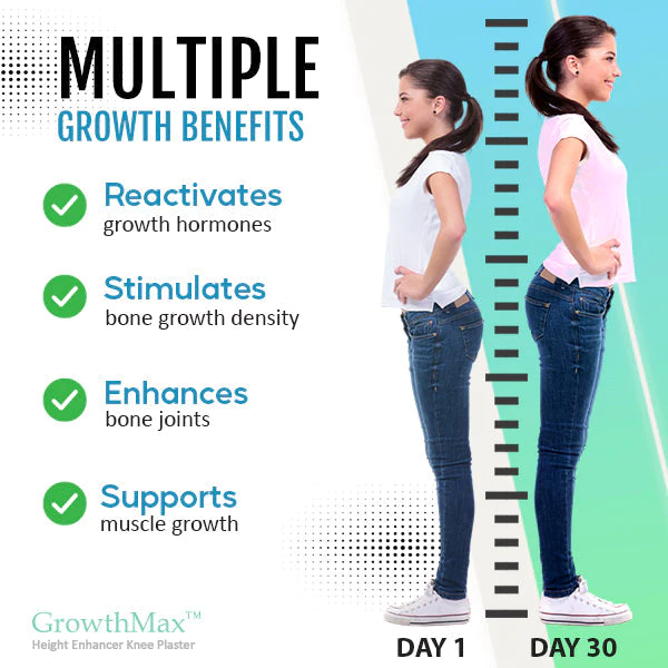 GrowthMax™ Height Enhancer Knee Plaster utilizes advanced bioactive compounds and growth-stimulating agents that work in synergy with the body’s physiological processes. When applied to the knees, these compounds penetrate the skin and reach the underlying tissues, where they initiate a cascade of biological responses. Firstly, the bioactive compounds interact with specialized cells called osteoblasts and chondrocytes, which are responsible for bone and cartilage formation, respectively. They stimulate these cells to increase their metabolic activity, leading to enhanced production and deposition of bone and cartilage components.