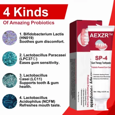 Each probiotic strain in AEXZR™ SP-4 Gum Therapy Toothpaste plays a crucial role in maintaining healthy gums.
