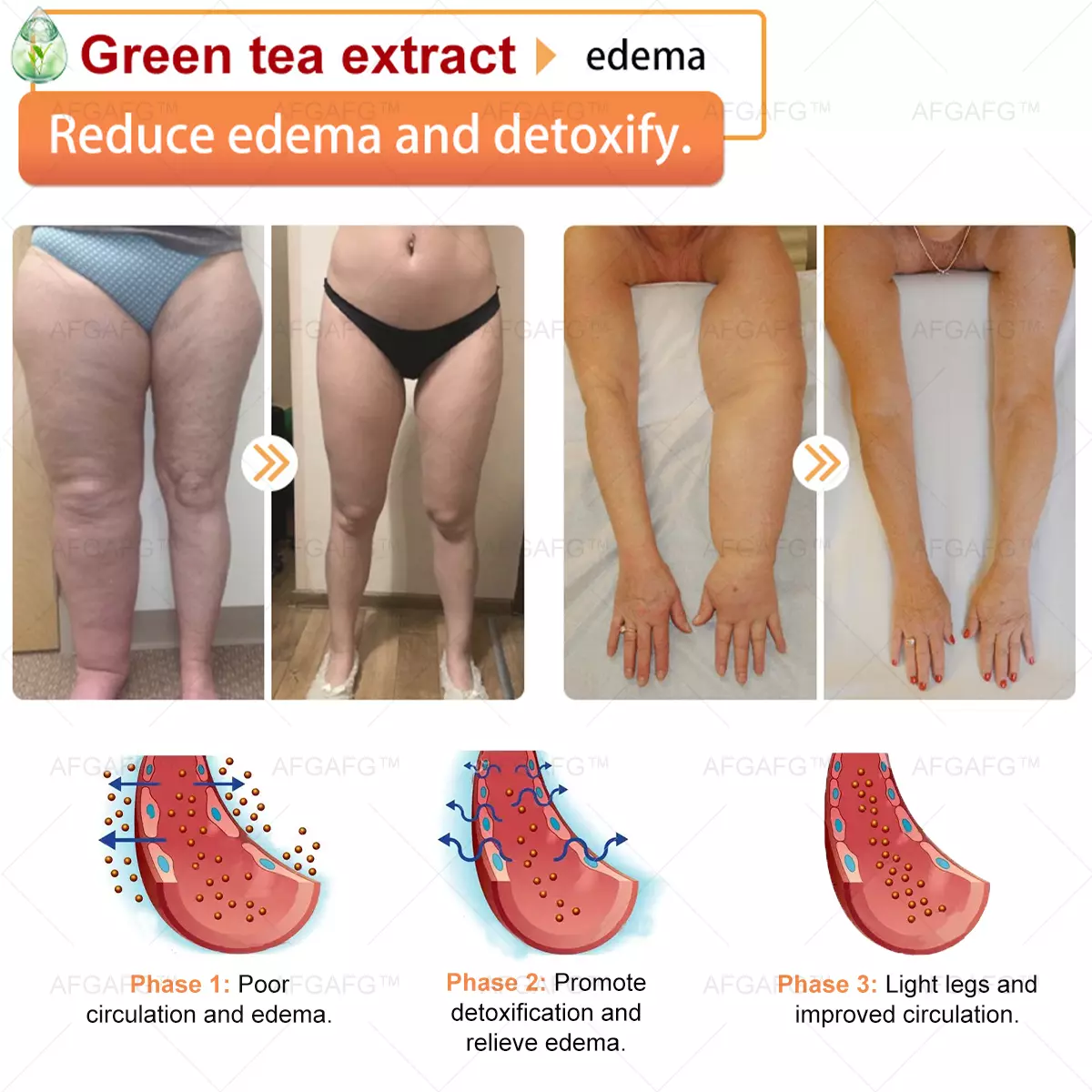 - Green Tea Extract: Supports lymphatic circulation, aiding in the removal of excess water and toxins from the body, reducing swelling and water retention.
