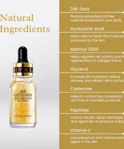 - Ingredients: Matrixyl 3000+ Complex, 24K Gold, Glycerol, Carbomer, Hyaluronic Acid, Peptides & Vitamin E